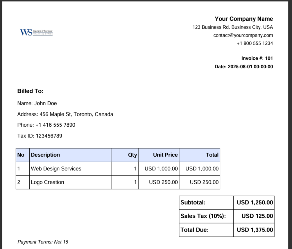🧾 PDF Invoicing